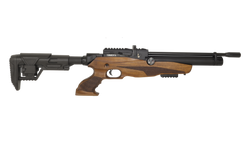 Lyra BP 4.5 mm is a modern, multi-shot PCP air rifle featuring a bullpup configuration with a side lever action, an adjustable trigger, and a stock crafted from premium-grade walnut wood. Available in .177 (4.5 mm), .22 (5.5 mm), and .25 (6.35 mm).
