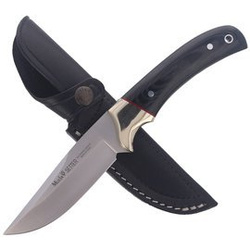 Typhoon-15N Black Micarta, Black uniwersalny nóż ze stałą klingą firmy Muela o konstrukcji full tang ze stali X50CrMoV15. Profilowane okładziny z micarty skręcone śrubami torx, rampa pod kciuk. Solidny wytrzymały zniesie pracę w każdych warunkach.