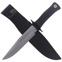 SCORPION-19W uniwersalny nóż bojowy Muela ze stali 420H - zniesie pracę w każdych warunkach. Klinga ze zbroczem i fałszywym ostrzem o profilu Spear Point pokryta nierefleksyjną powłoką Satin Finish (pół-mat). Rękojeść elastomer, etui skóra..